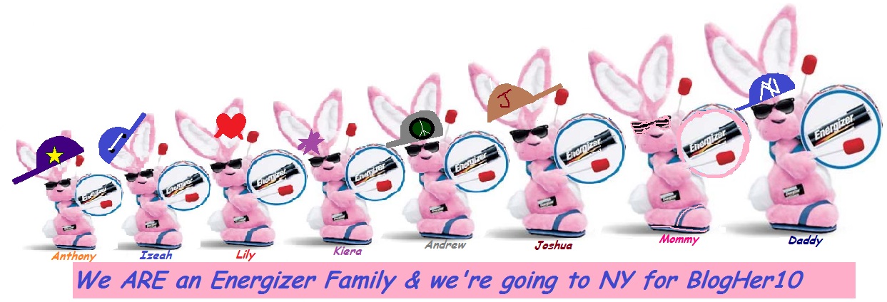 If asked from Energizer, I will parade my Family through the BlogHer Hotel and City in our Energizer T-shirts looking like a duck row made of Energizer Bunnies...